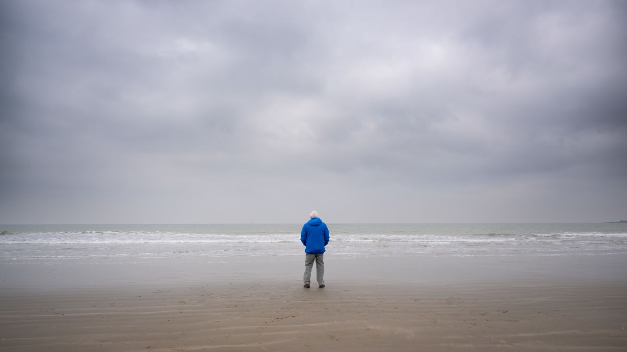 David Attenborough looks out to sea in Southern England. The film is released in cinemas on his 99th birthday.