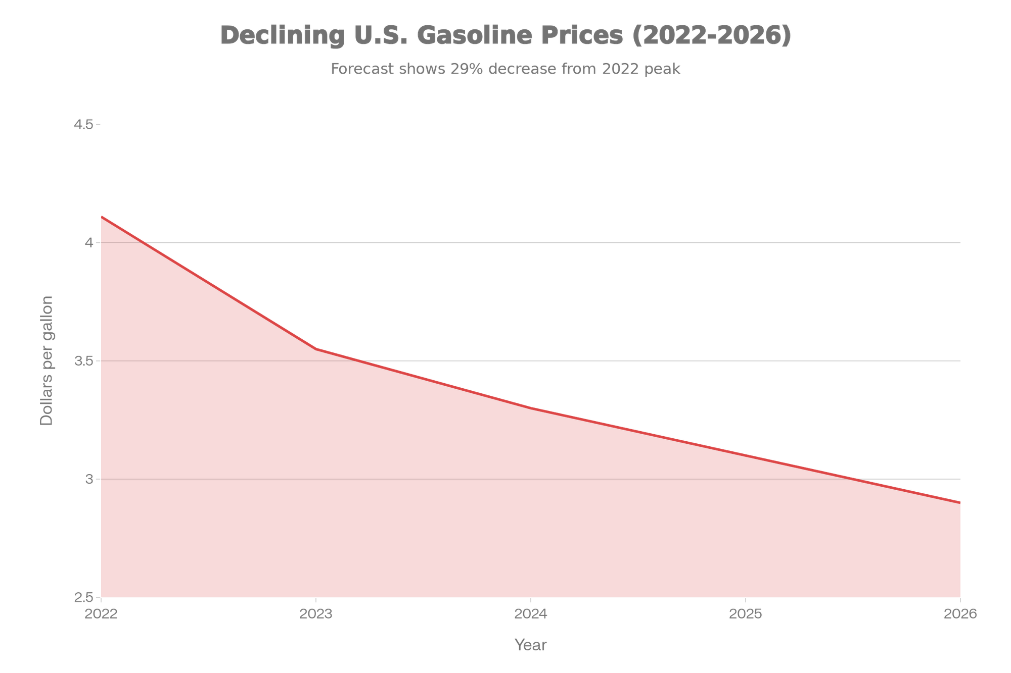 The U.S. Energy Information Administration now projects that average retail gasoline will fall to about 2.90 dollars a gallon in 2026, a further drop from roughly 3.30 in 2024 and a little over 3.10 in 2025. That relief won’t be evenly spread—West Coast drivers are still likely to pay more because of taxes and refining costs—but in much of the country the agency expects sub‑3‑dollar averages, with some Southern states flirting with the high‑2s all year.